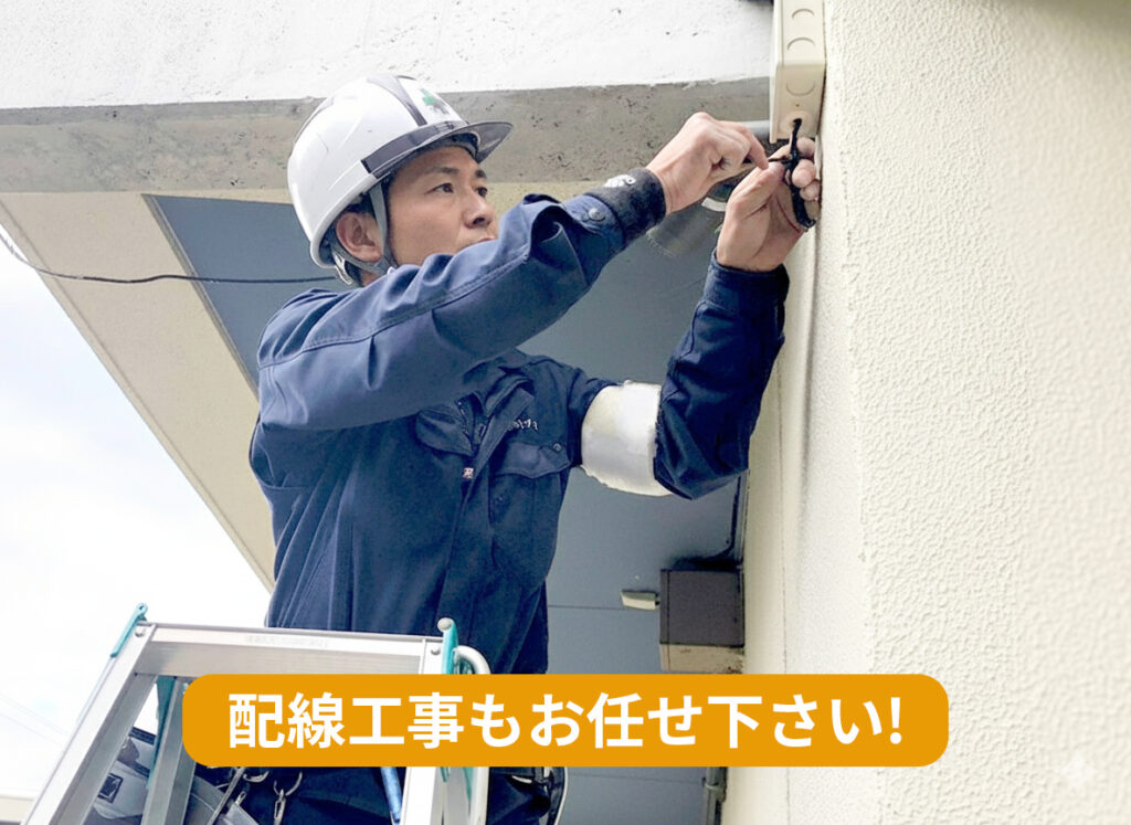 当社では防犯カメラ取付に慣れた電気工事士が施工を担当。見た目もスッキリするよう配線を丁寧に処理致します。