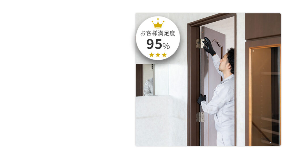 プロならではの的確な施工で、ドアが閉まらない・引っかかる、鍵がかからない、きしみ音や隙間風などの不安を防ぎながら、ドアの使い心地と寿命も大きくのばせます。