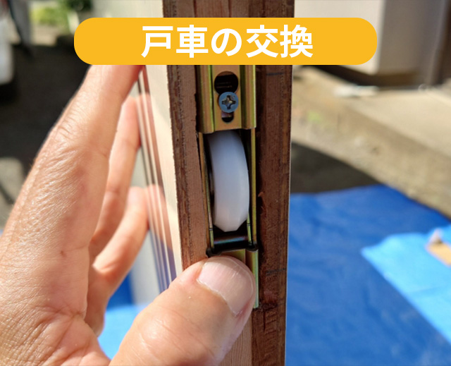 内容門扉の戸車交換