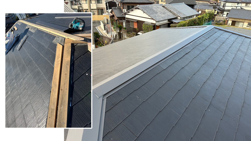 瓦1枚のズレ直しや棟板金の補修といった小さな部分修理はもちろん、トタン屋根やポリカ屋根の張り替え・交換工事まで幅広く対応可能です。