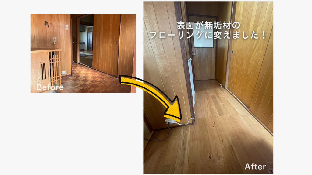 内容 | 玄関~廊下 フローリング上張り |